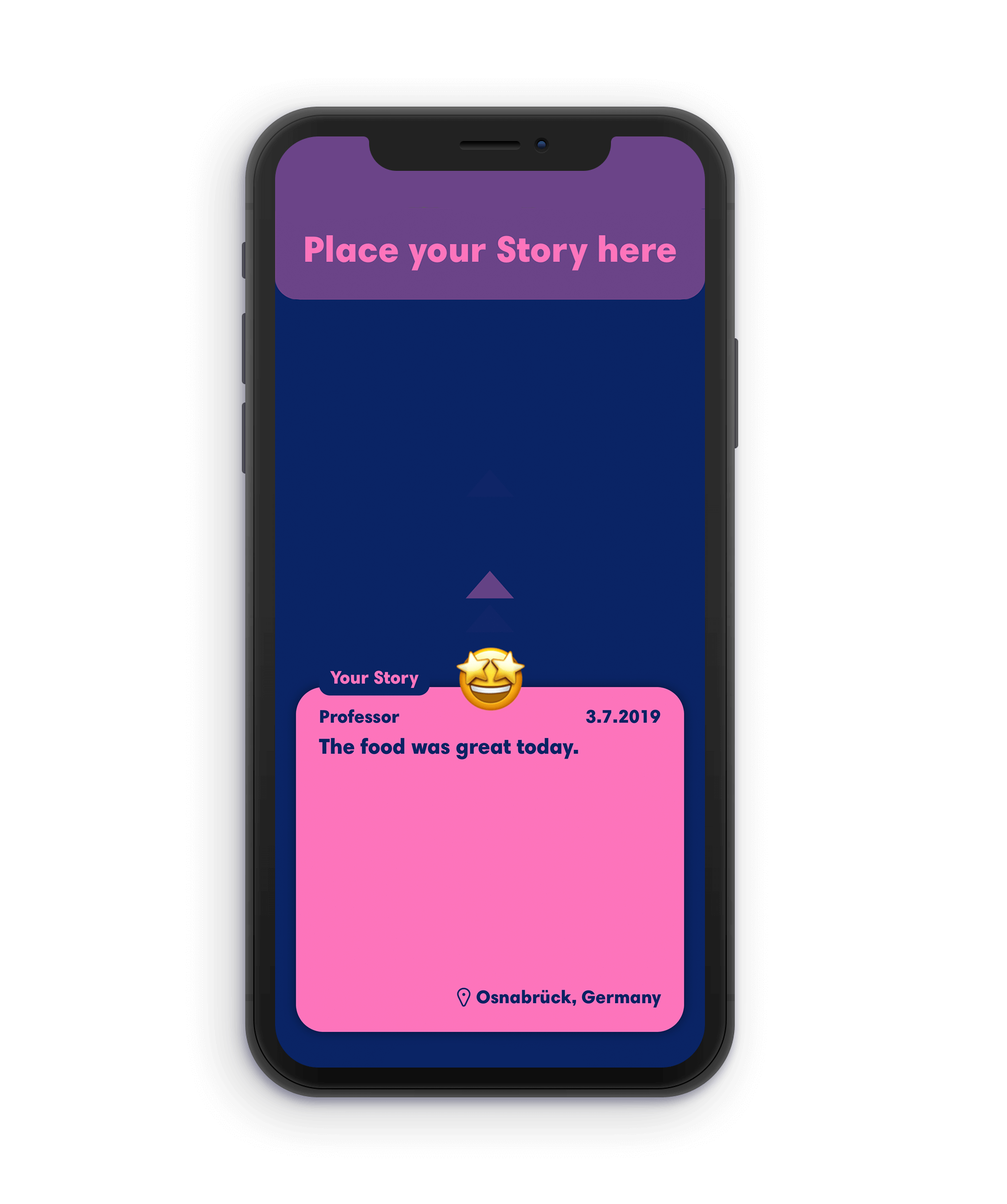 Was definiert sie? Die Mensa? Die Studiengänge? Die Gebäude? Nein, es sind die Menschen und ihre Erfahrungen und Geschichten, die sie vor Ort erleben. Sie stehen im Mittelpunkt des Giveaways. Das Weitergeben von Erfahrungen und Geschichten schafft die Möglichkeit, sich mit der Hochschule Osnabrück zu identifizieren.