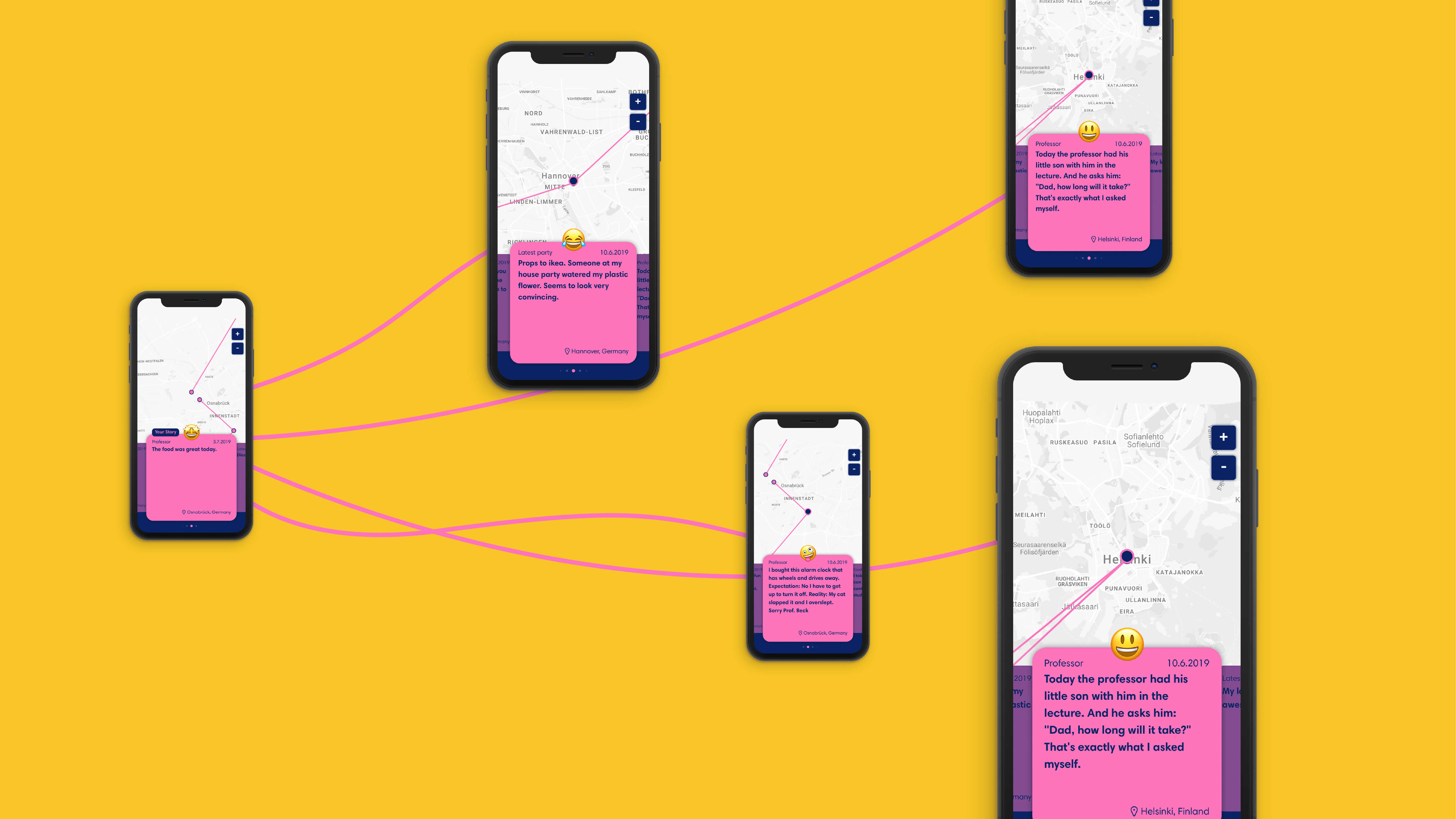 Daraufhin bricht der Nutzer ein Stück der Karte ab und gibt den Rest weiter. Nach dem Weitergeben hat er Zugriff auf alle anderen Geschichten, die mit der Karte verbunden sind. Die Karte und die damit verknüpften Geschichten gehen auf eine Reise durch die ganze Welt und mit jedem Schritt gewinnt es an Mehrwert: ein digital angereicherter Kettenbrief.
